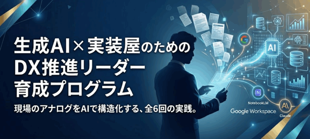 企業版Google Workspace・NotebookLM・Claudeを軸に、アナログ業務をAIが処理できる構造化データへと変換する“実装屋”のためのDX推進リーダーを育成します。