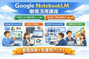 講座名: Google AI × NotebookLM × Workspace 実践講座:ローコスト組織変革と付加価値データ活用 ■概要 高額な専用システムを導入することなく、既に多くの企業で導入されている「Google […]